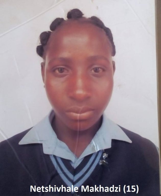 A 15-year-old girl, Netshivhale Makhadzi from Shayandima location, was last seen by her family on 12 October 2018. At the time of her disappearance, she was wearing black denims, black t-shirt and pink takkies.